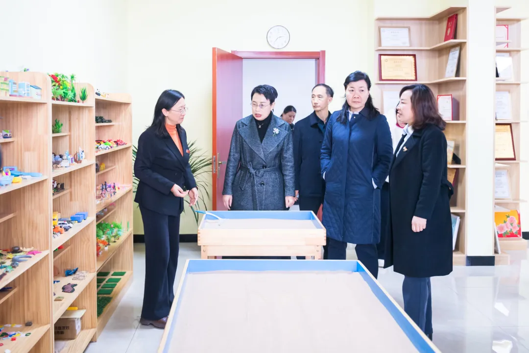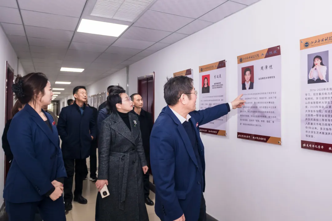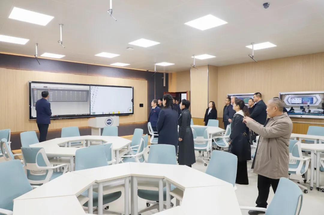 考察组一行先后深入学校东、西校区,实地调研了我校办学软硬件设施,直观感受学校育人理念与办学实力。在东区,考察组通过校园规划沙盘了解整体布局,在智慧教室体验现代化教学技术的革新力量,在“小发明小创造”节作品展区、优秀校友展、荣誉室中,见证学校创新创业教育与人才培养的丰硕成果;拓荒精神育人教育基地、中国教育家图文馆等则让考察组对学校的文化传承与育人特色有了更深的认知。艺术楼内,大剧场的专业设施、音乐学院的实训场地、文化传媒学院的虚拟演播厅与录音棚,以及美术学院的党建样板支部阵地、非遗工作室等,充分展现了学校学科建设的专业性与特色化,赢得考察组的高度评价及赞誉。