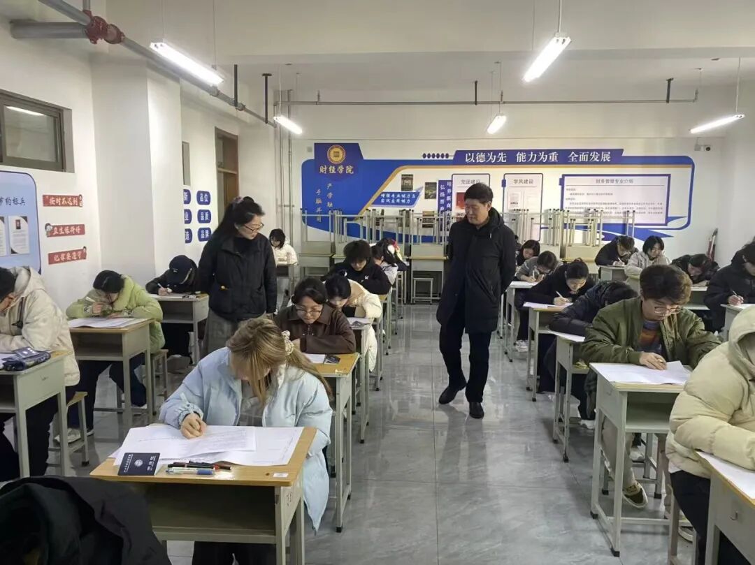 1月6日,校长宋兴航,执行校长迟云平,副校长郝海龙、韩如成、校长助理李俊晓、宋煜等校领导深入各考场巡视。他们仔细查看考场环境布置、监考人员履职情况,还俯身与考生亲切交流,询问应考状态。宋兴航校长着重强调“考风即学风”,要求全力维护公平公正的考试环境,同时鼓励考生沉着应战、发挥水平,让学子们切实感受到校领导的关怀与支持。郝海龙副校长全程协同,重点核查监考设备运行、防作弊措施落实等细节,筑牢考试保障防线。