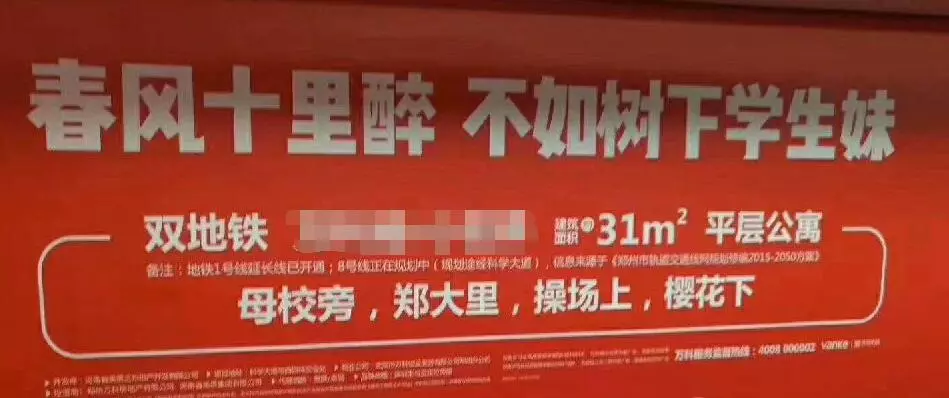 尼尔·波兹曼正在《文娱至死》一书中如许描述:正在现代社会,一切话语都日渐以文娱的体例呈现,并成为一种文化。一切文化内容都毫不勉强地成为文娱的附庸,并且毫无牢骚,以至无声无息。可是,总有人对这句话发生,文娱没有至死,即便文娱至死也有文化依托,若有即是取整个社会为敌。今天,小编有事去外埠,回来发觉错过了一场风浪。郑州有房地产商正在做做营销时点名郑州大学女学生,以至伴侣圈还疯传了一份告白照片,告白文字为:“春风十里醉,不如树下”。看到如许的句子,小编只觉脸色轻佻,姿势难看,这个文宣给我的印象并不合适它的以往价值不雅,所谓“功德不出门,坏事传千里”,当小编今天有空去翻伴侣圈时,他的名声曾经远扬了。有郑大学生认实的向中国青年网暗示,宣传里说的:“母校旁,郑大里,操场上,樱花下。”可是这个项目并不正在郑大里面。